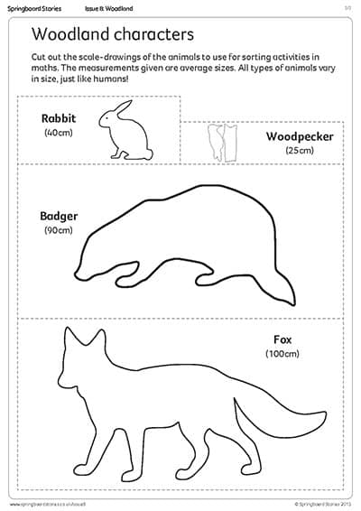 Use these outlines of the woodland animal characters in A Thumping Great Rabbit to work out water rationing.
