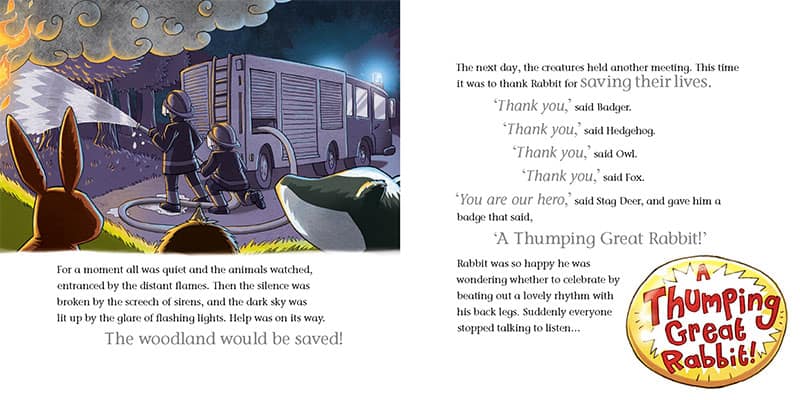 ‘Be quiet!’ said Badger. ‘Keep it down!’ grumbled Hedgehog. ‘Stop banging!’ pleaded Owl. Poor Rabbit, it seemed that no-one appreciated his drumming. But when trouble strikes, a noisy, thumping pair of feet is just what you need....