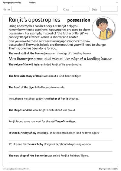 Using apostrophes can be tricky. Let Ranjit help children remember when to use them. These activity sheets look at possession and contraction.
