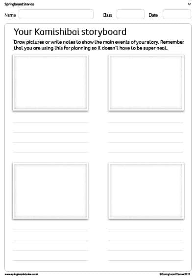 You can introduce children to story planner templates to help them structure and learn their chosen story. These are widely available but can be downloaded from the Springboard Stories website too. Explain that this is not about writing their story out word for word. They should just concentrate on giving their stories a beginning, a middle and an end.