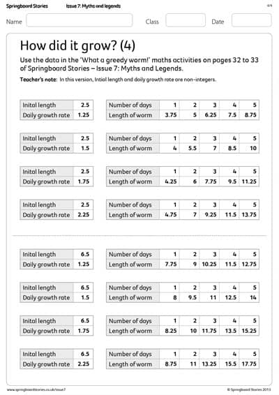 All the data you need for the 'What a greedy worm!' activity in the 'Taking shape' maths lesson.