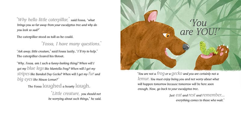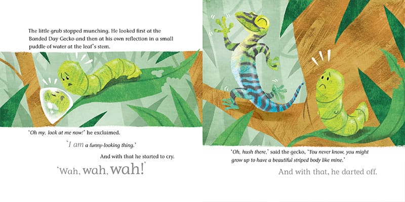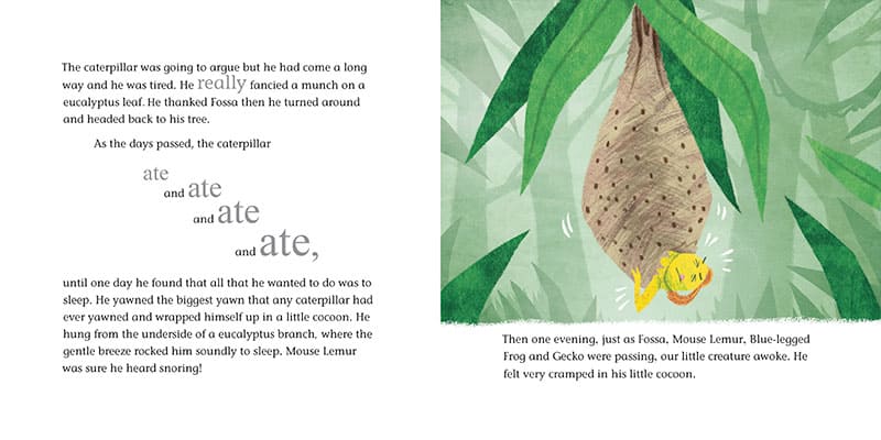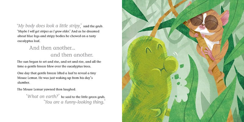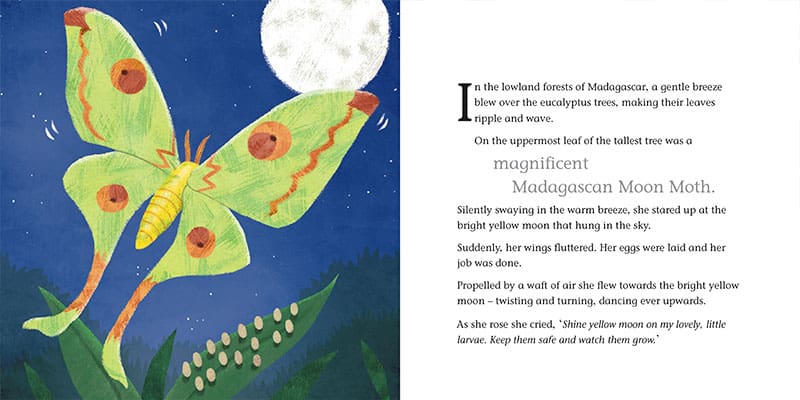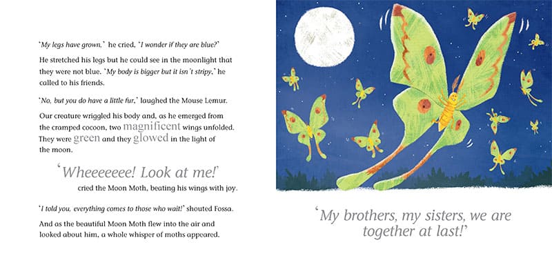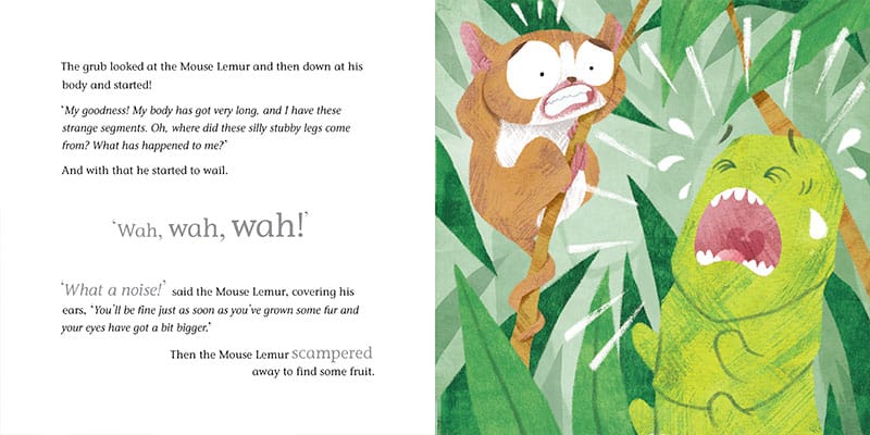 Meet our little grub on his journey to becoming a Moon Moth. Along the way, he meets lots of Madagascan jungle animals and learns about patience and self-belief too.