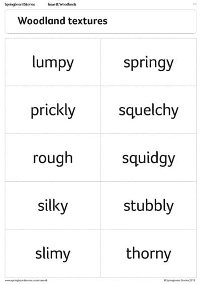 Use these word cards to give children inspiration for their woodland writing.